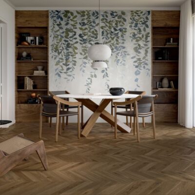 Η κλασσική διακοσμητική τοποθέτηση Chevron έρχεται ξανά στο προσκήνιο και μας ξανασυστήνεται ως μέσο δημιουργίας κομψών συμμετριών, ιδανικών για τη διαμόρφωση άνετων ατμοσφαιρικών σύγχρονων χώρων. |