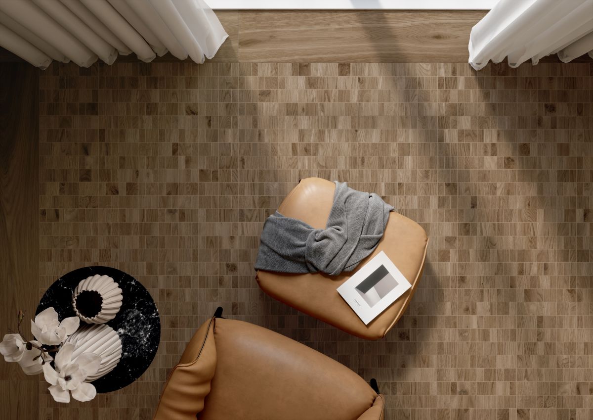 – Η σειρά διαθέτει δύο διακοσμητικά σχέδια. Ξεκινάει με το εντυπωσιακό Tessere 28×29 και συνεχίζει με το Inserto 20×120 που και τα δύο μπορούν να χρησιμοποιηθούν δάπεδο και τοίχο.