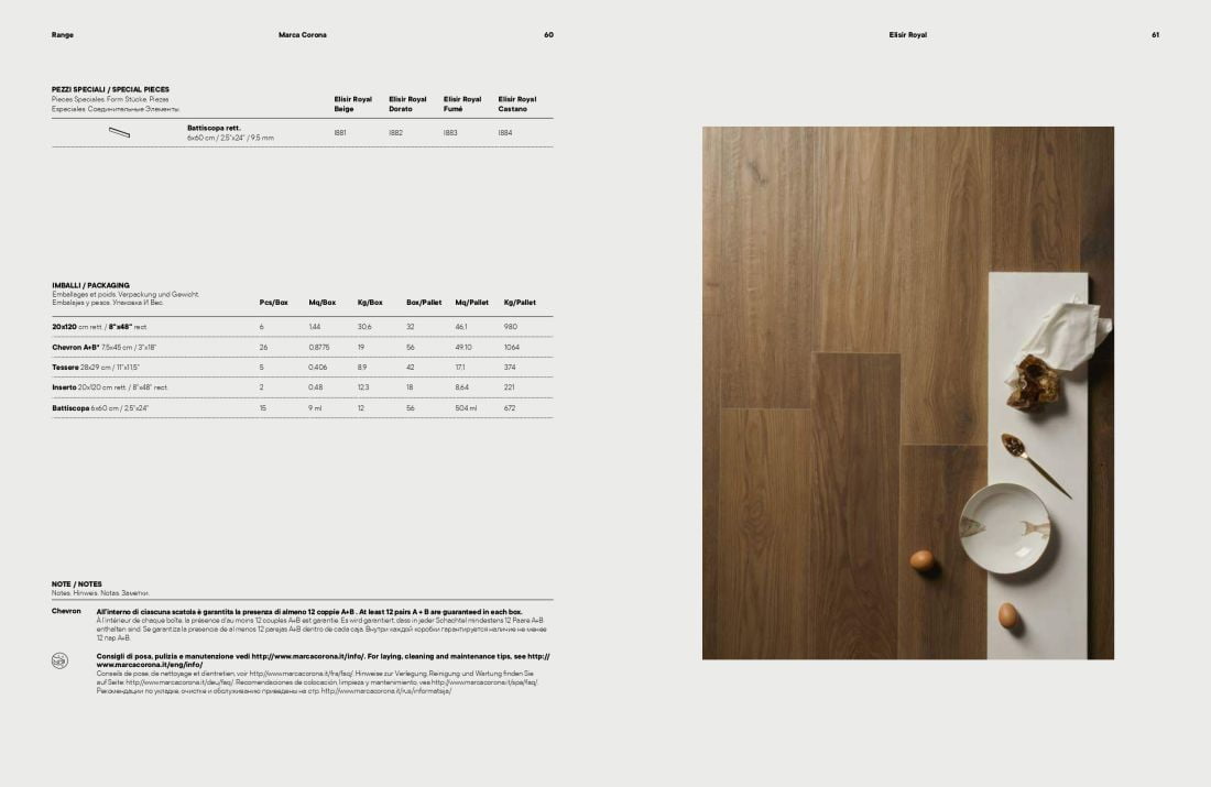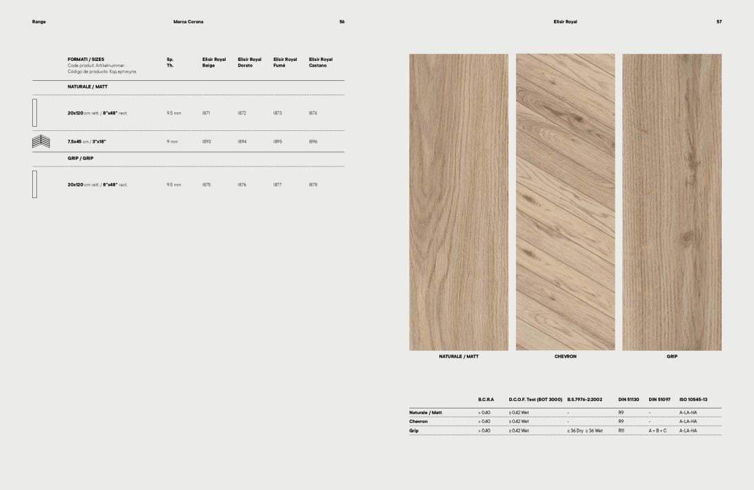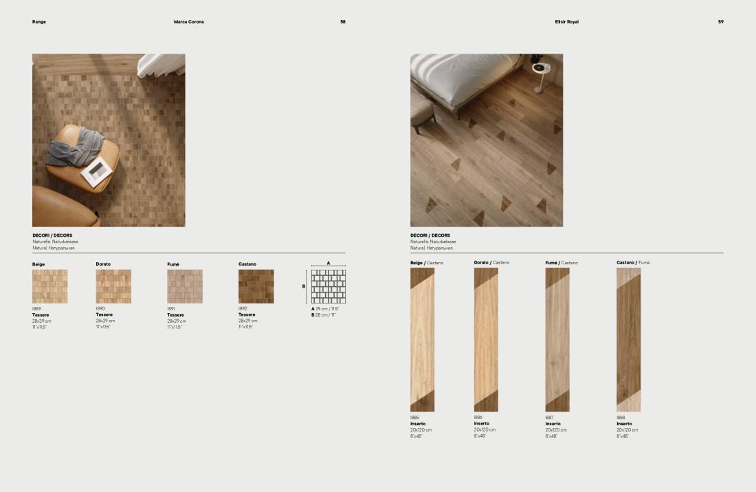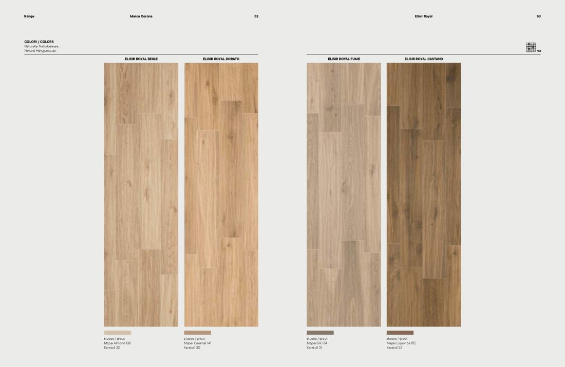 Της “βασιλικής” σειράς αποδίδει τη γοητεία του φθαρμένου ξύλου με έναν σύγχρονο τρόπο. Μια αναπαράσταση του ξύλου που ακολουθεί πιστά τα στοιχεία της ταυτότητας των πιο μεγαλοπρεπή δέντρων. Η Marca Corona με αμείωτο πάθος και διάθεση για την παραγωγή βιώσιμων και ποιοτικών πλακιδίων, συνεχίζει να καινοτομεί προσφέροντας στα έργα όπου συμμετέχει αξιοπιστεία, υψηλή αισθητική και αμείωτη ποιότητα.