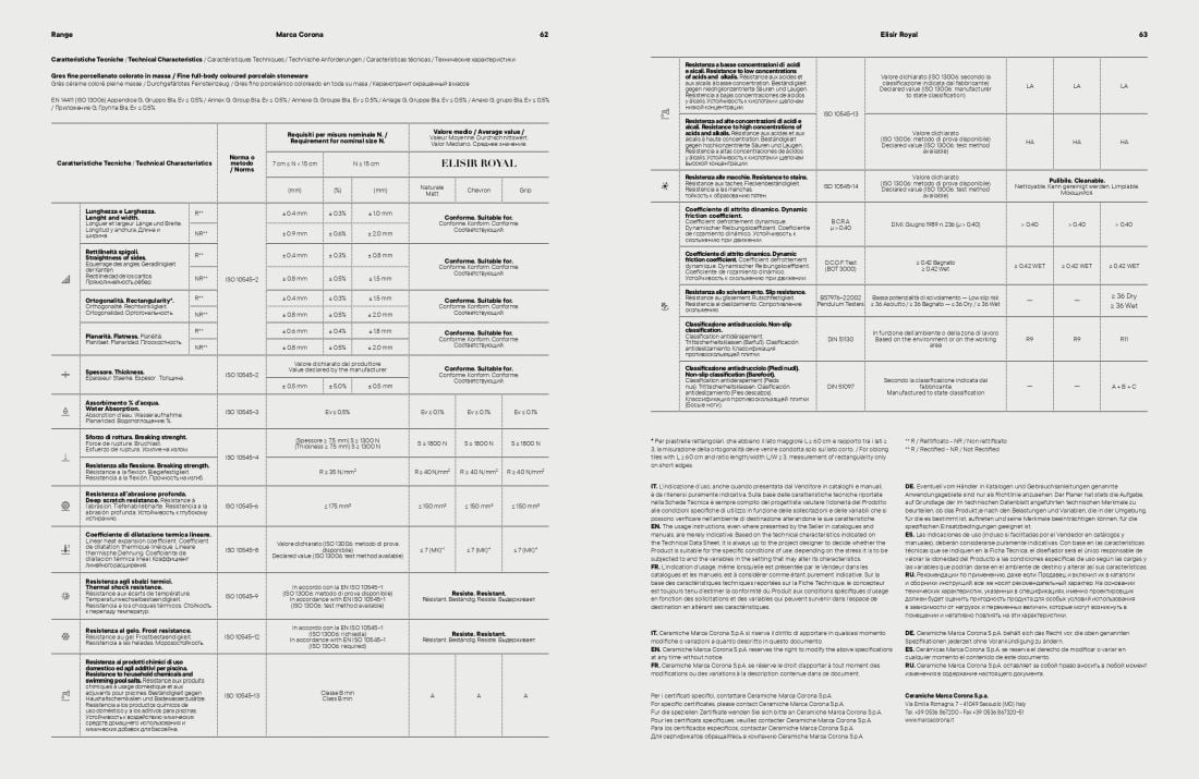 – Fine Full body Coloured porcelain stoneware, σε ειδικές εκδόσεις όλες οι διαστάσεις από πάχος 9mm έως 9,5mm πάχους. Η σειρά εντυπωσιάζει ακόμα και με τις υψηλές προδιαγραφές της. Παραγμένη με τις πιο πρωτοπόρες προδιαγραφές στα πλακάκια και με το πρόγραμμα Green thinking με Green Certification.