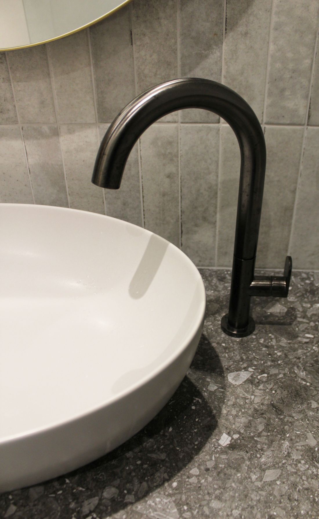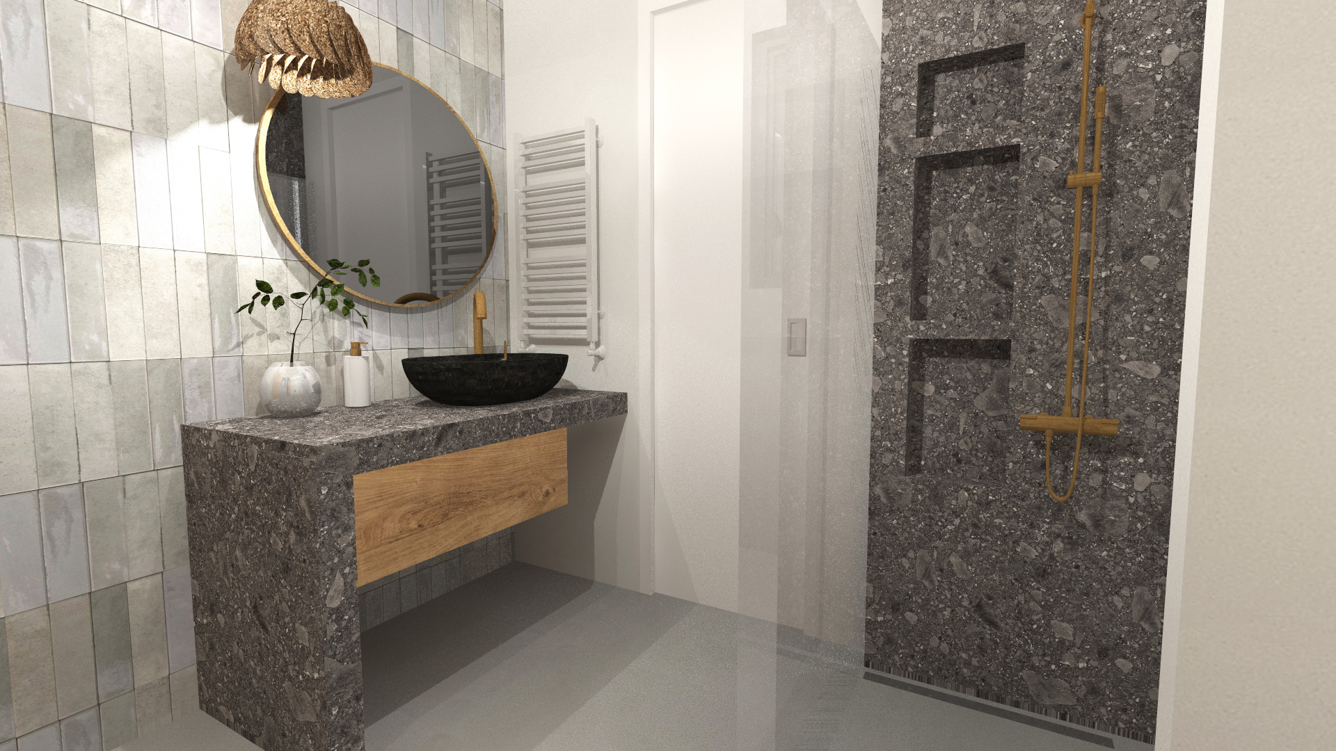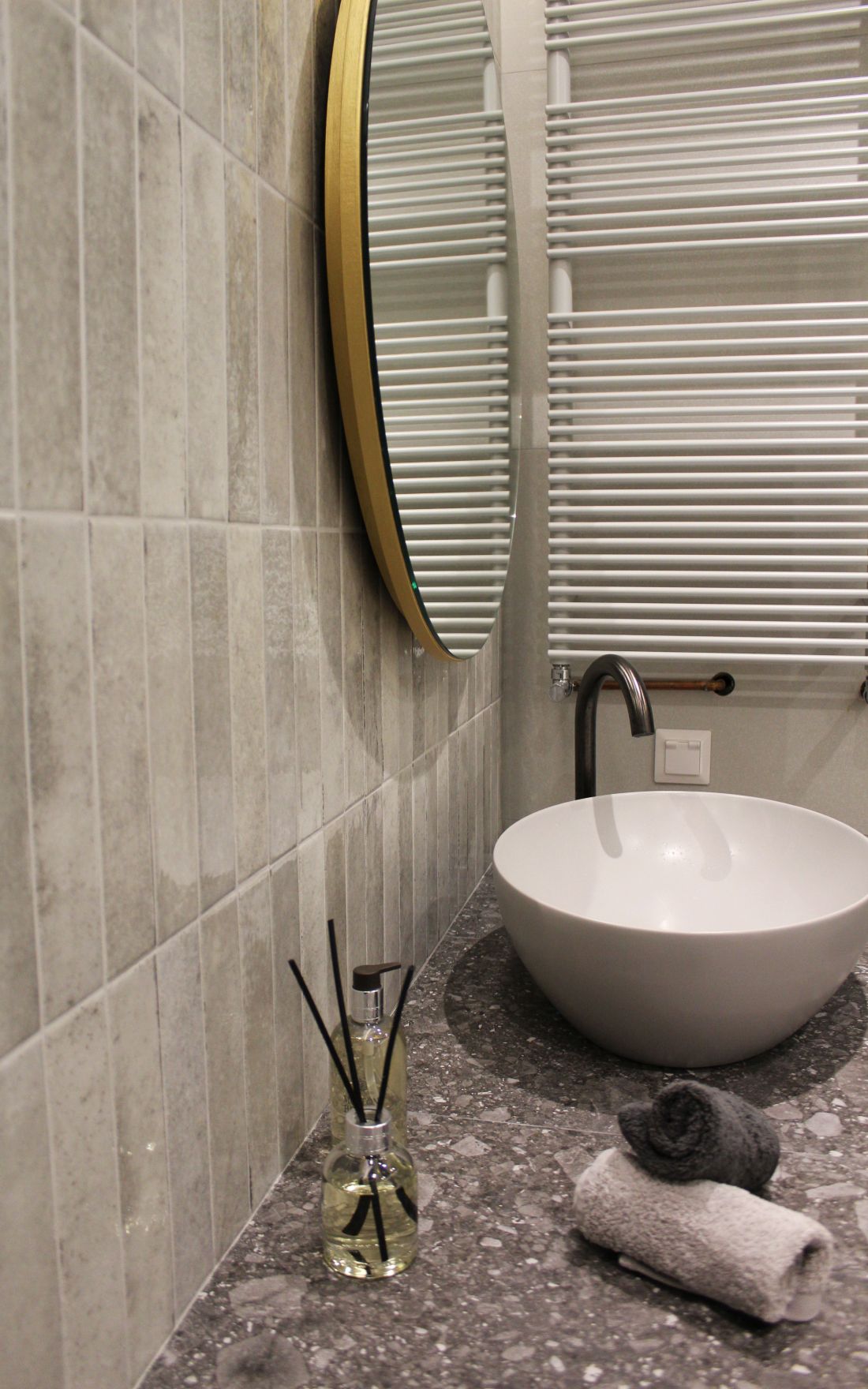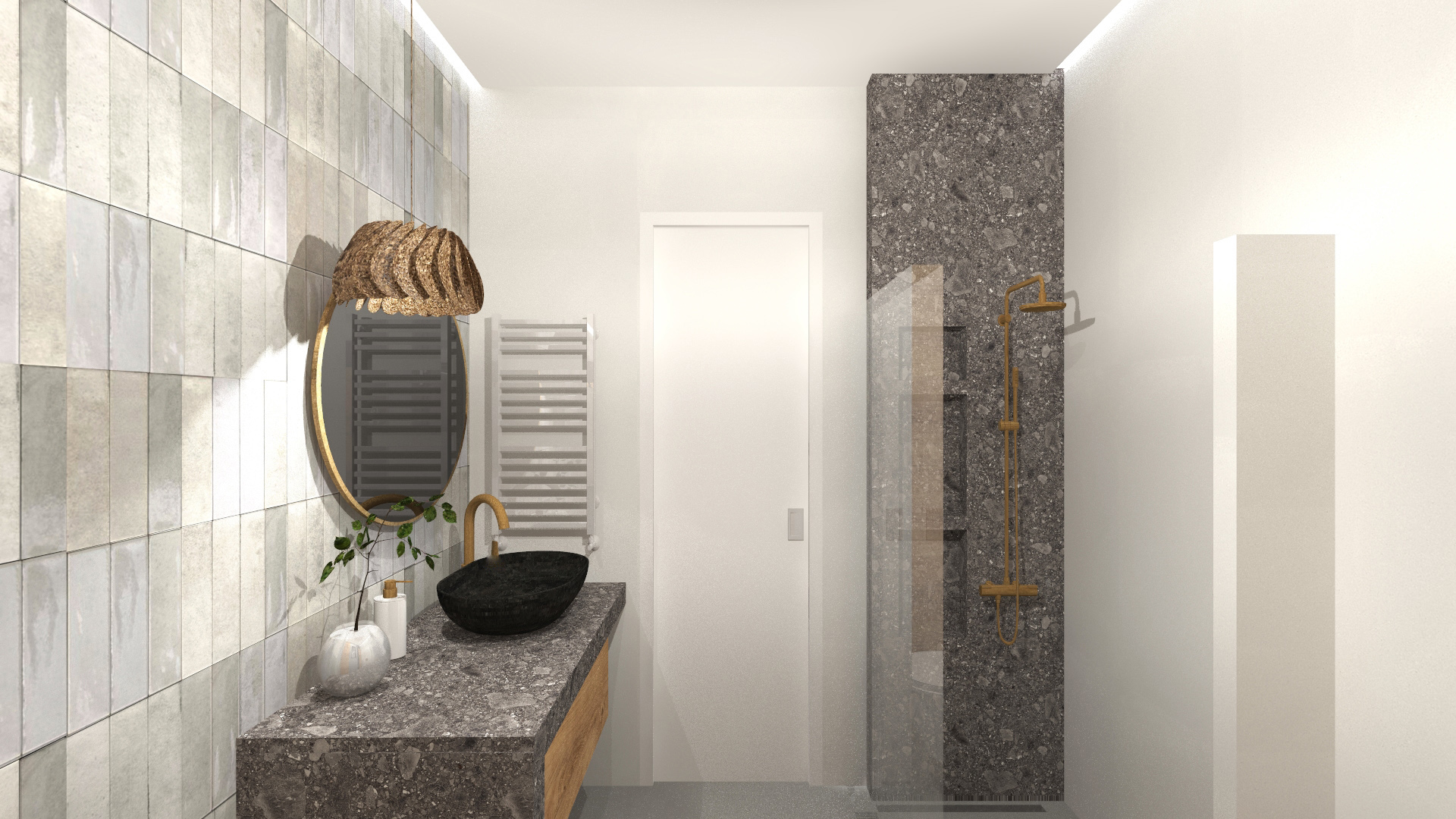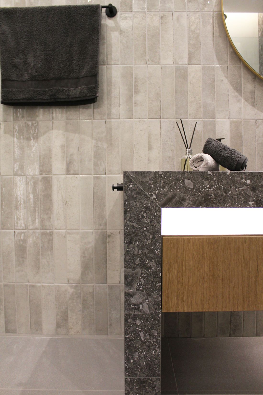 Η ανακαίνιση αυτού του μπάνιου ήταν μια όμορφη αφορμή για εμάς να αναδείξουμε πώς μπορεί σε ένα τυπικό αθηναϊκό μπάνιο διαμερίσματος, να γίνει ένας συνδυασμός διαφορετικών πλακιδίων ως προς το ύφος, το μέγεθος, τις υφές και το αποτέλεσμα να ισορροπεί.
