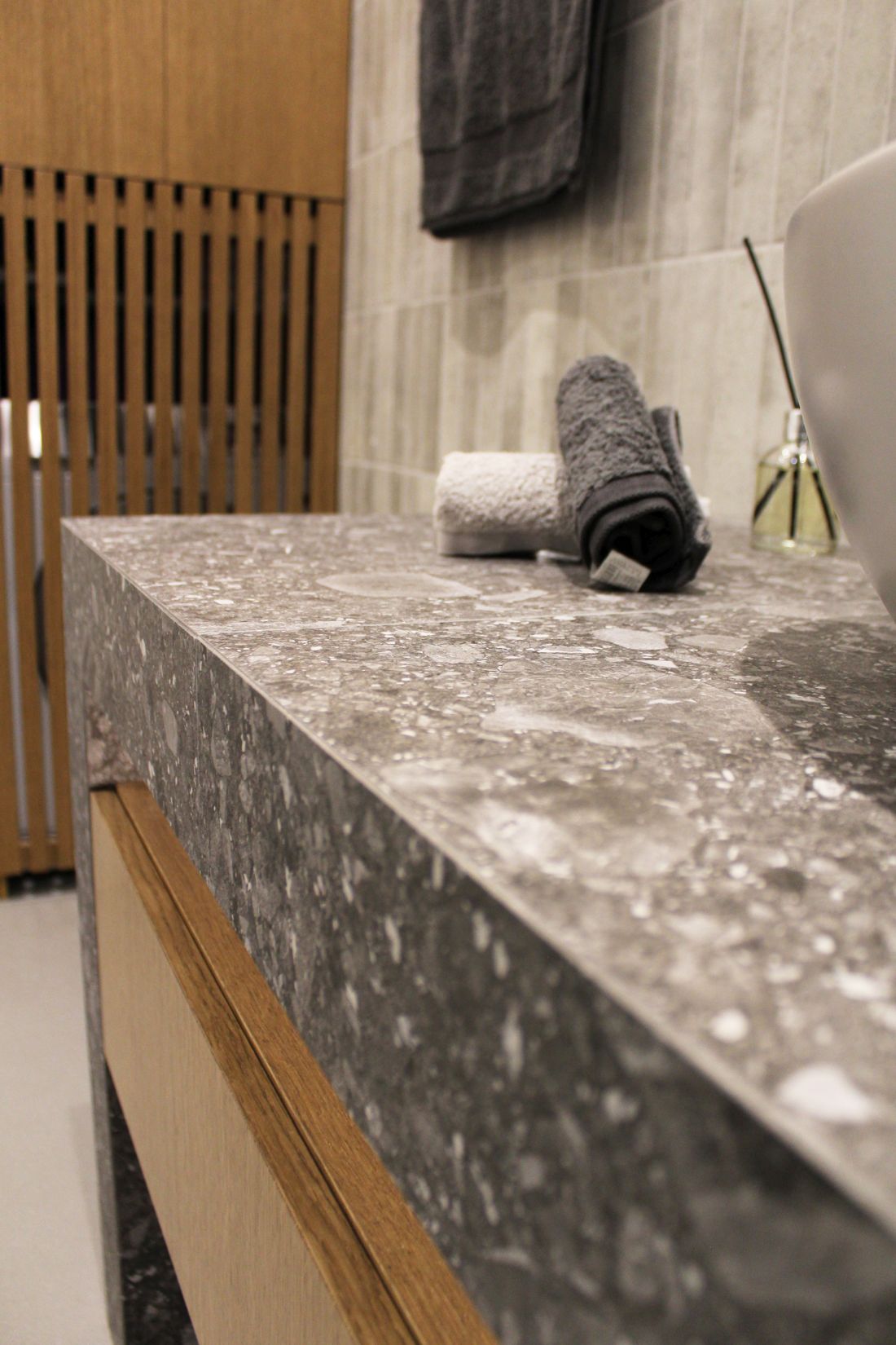 Ένα μπάνιο που μαρτυρά ισορροπίες και την αγάπη μας να συνδυάζουμε πολλά διαφορετικά υλικά με τον καλύτερο δυνατό τρόπο.