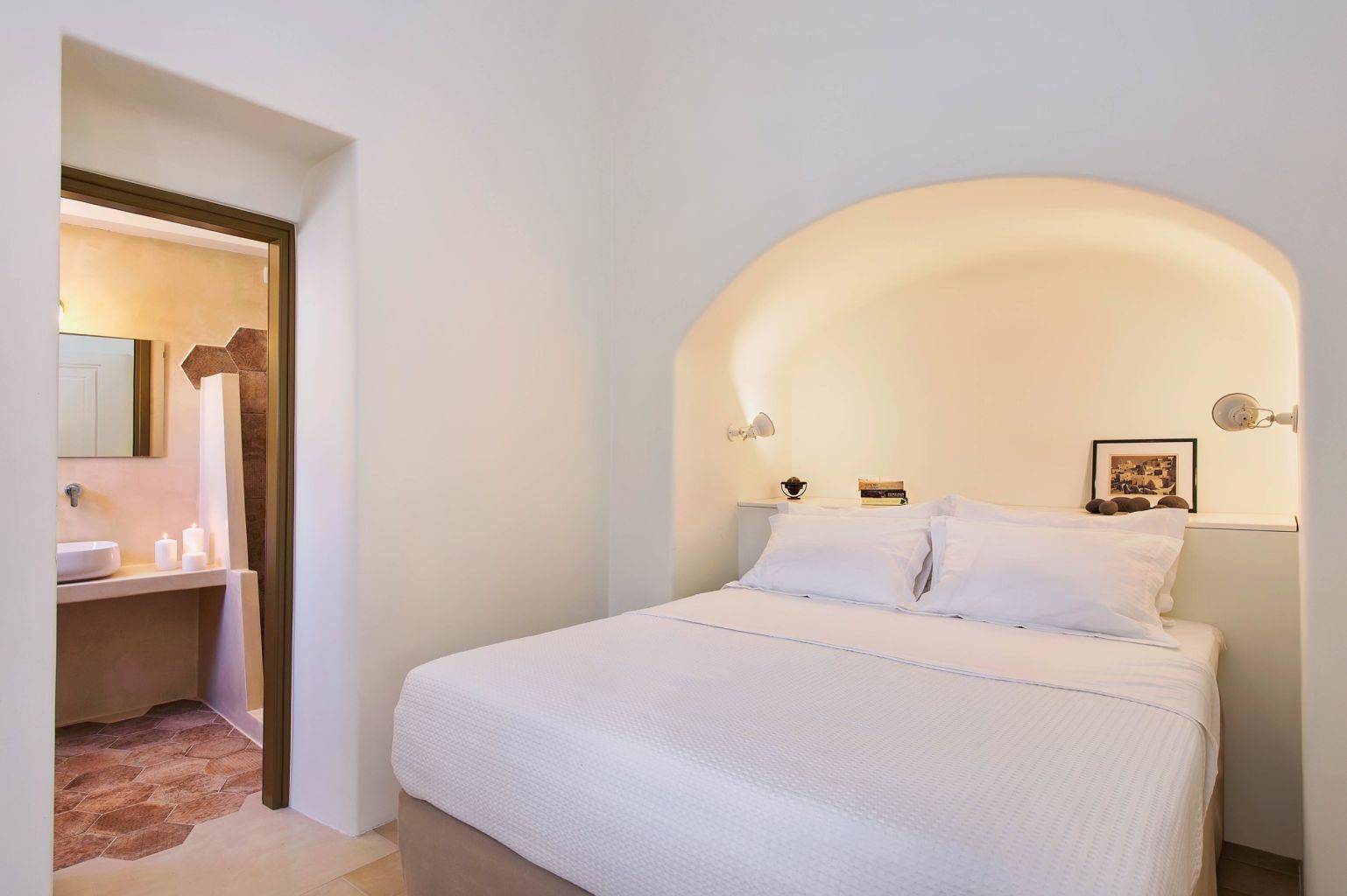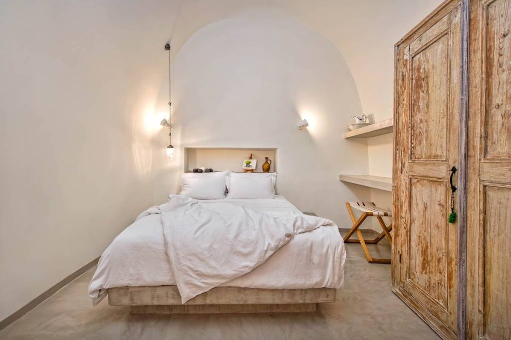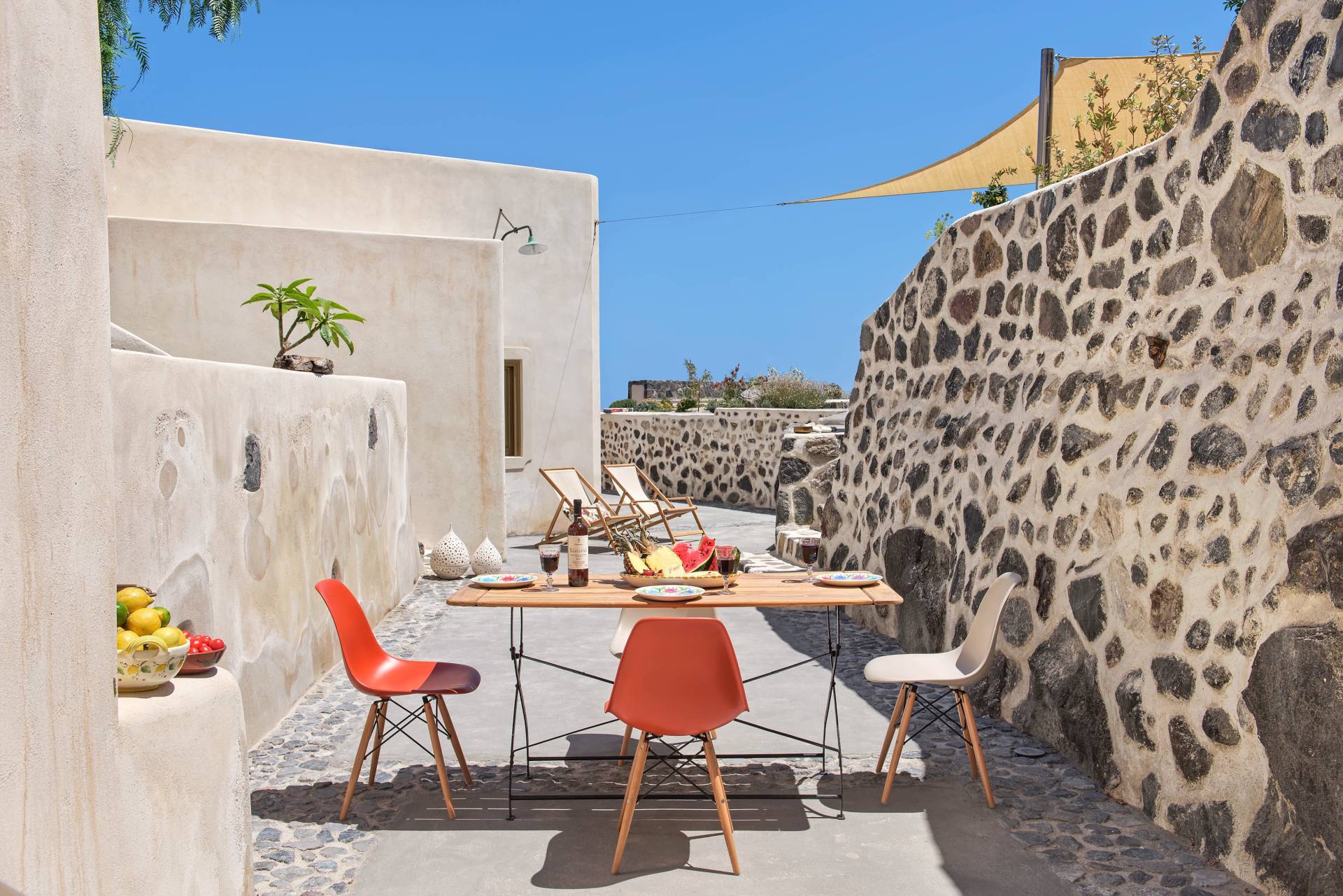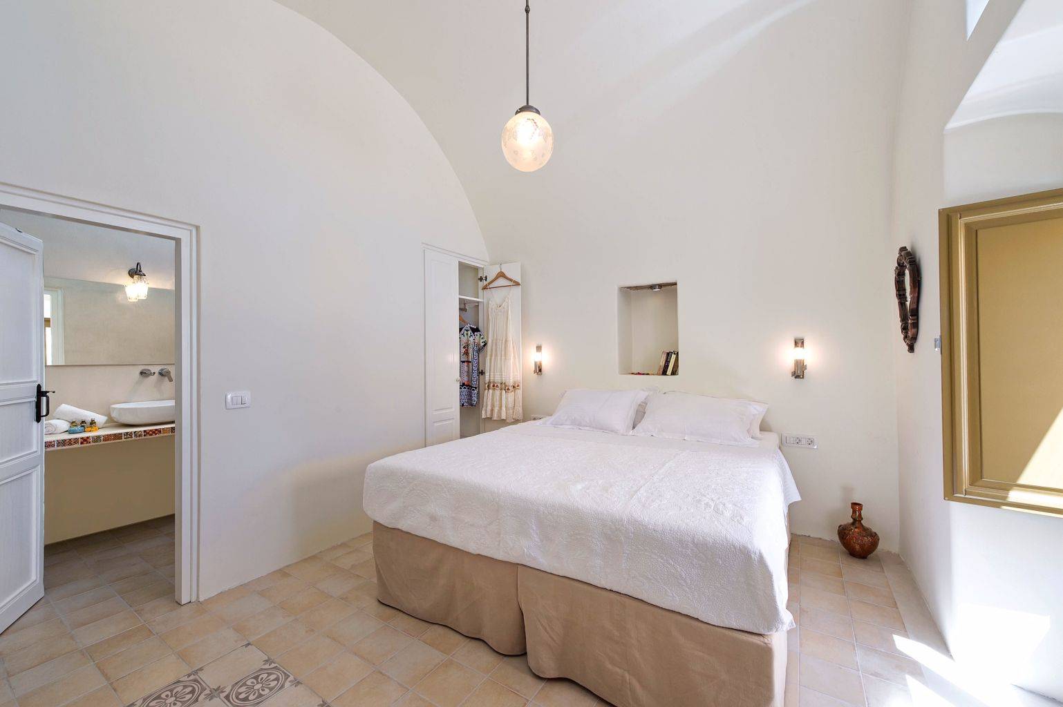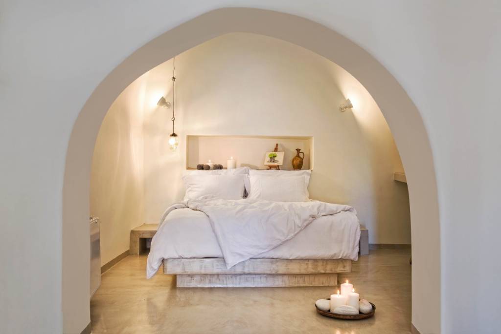 Mantilida Villa Santorini, ένα έργο που φτιάχτηκε με πολύ μεράκι από τους ιδιοκτήτες τους. Δεν θα μπορούσαμε να μην τους ακολουθήσουμε καθώς το έργο τους το αγαπήσαμε από την πρώτη στιγμή. Όταν ο χώρος αποπνέει σεβασμό για την ιστορία του η ευθύνη για την επιλογή των υλικών στο σήμερα αυξάνεται. Βρίσκεται στο Εμπορείο της Σαντορίνης, ένα μέρος που κάποτε ήταν το πέρασμα των έμπορων από όλο τον κόσμο για να προμηθευτούν τα περιζήτητα παραδοσιακά προϊόντα που ο ευλογημένος τόπος παρήγαγε. Ο συνειρμός αυτόματος … υλικά που αντέχουν στην καταπόνηση και στην αυξημένη κινητικότητα. Χαρακτηριστικό επίσης γνώρισμα στην Σαντορίνη του τότε ήταν ότι τα δάπεδα τα κοσμούσαν πλακάκια με σχέδια και κάθε χώρος είχε το δικό του σχέδιο. Με κριτήριο αυτά τα δύο χαρακτηριστικά η επιλογή ήταν ο ιταλικός οίκος Arkadia, με την σειρά Novecento. Τόσο στην Κάναβα όσο και στο Μεγάλο σπίτι χρησιμοποιήσαμε σαν βάση το Cemento Avorio 20×20 και στα υπνοδωμάτια παίξαμε άλλοτε με το Petali Grigio 20×20 άλλοτε με τα Versailes Grigio 20×20 ενώ άλλοτε με τα Trianon Grigio 20×20. Πλακάκια πολύ υψηλών προδιαγραφών που υπόσχονται να παραμείνουν αναλλοίωτα στον χρόνο. Τόσο για την αισθητική τους όσο και για την ποιότητα τους. Οι παραγωγοί τους έχουν φέρει την παλαιότητα τους στην επιφάνεια τους παρουσιάζοντας κάποιες σκιάσεις και φυσικές αλλοιώσεις στους τόνους για να δείξουν ότι μετράνε χρόνια τοποθετημένα. Η σκέψη για το στήσιμο της κουζίνας είχε αρχίσει ήδη να αναφέρεται. Δεν ήταν πρόβλημα όμως, καθώς γνωρίζαμε ότι θα ακολουθήσουμε την ίδια σειρά. Το πρόβλημα ήρθε όταν δεν ξέραμε τι να διαλέξουμε. Τελική επιλογή ήταν το Fiore Rosso 20×20 για την κατασκευή του πάγκου και η Fascia Fiore Rosso 20×20 για την επένδυση του τοίχου της κουζίνας. Ποτέ δεν θα ξεχάσουμε τις περιγραφές για την φυσική εσοχή για τις εστίες της ηλεκτρικής κουζίνας. Το επόμενο βήμα ήταν να δημιουργήσουμε τα μπάνια των χώρων. Είχαμε σαν αφετηρία μας το χαρακτηριστικό γνώρισμα του κυκλαδίτικου νησιού που δεν είναι άλλο από τις καμπύλες των τοίχων. Ήταν δεδομένο ότι η πατητή τσιμεντοκονία θα κυριαρχούσε στον χώρο καθώς είναι το μοναδικό υλικό που θα μπορούσε να ακολουθήσει αυτή την ροή. Αυτό που ψάχναμε είναι το κάτι διαφορετικό στα σημεία.