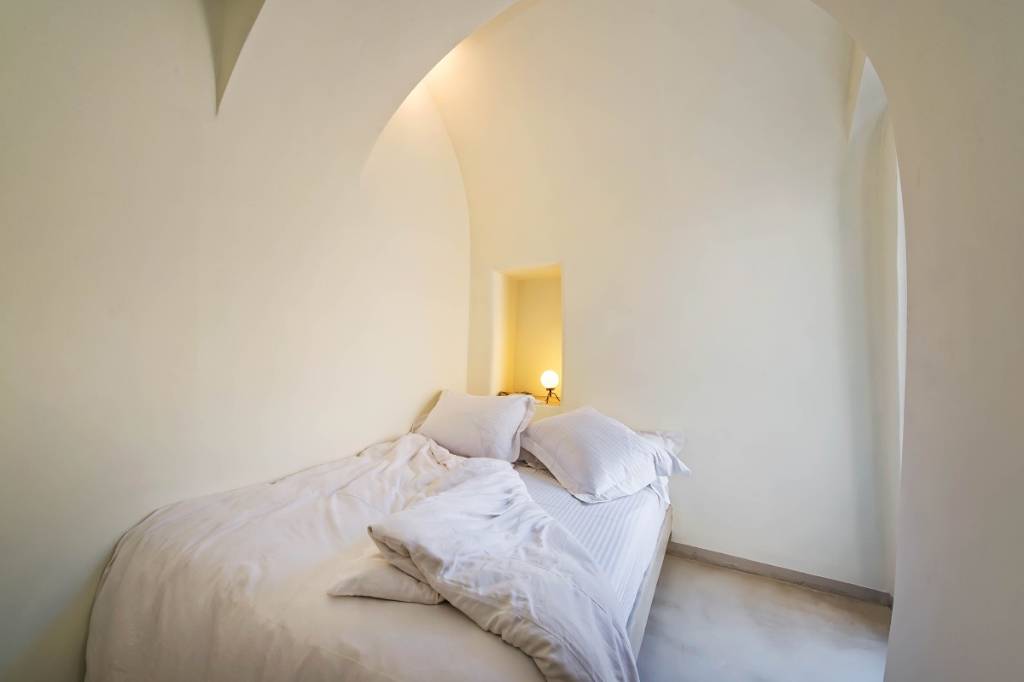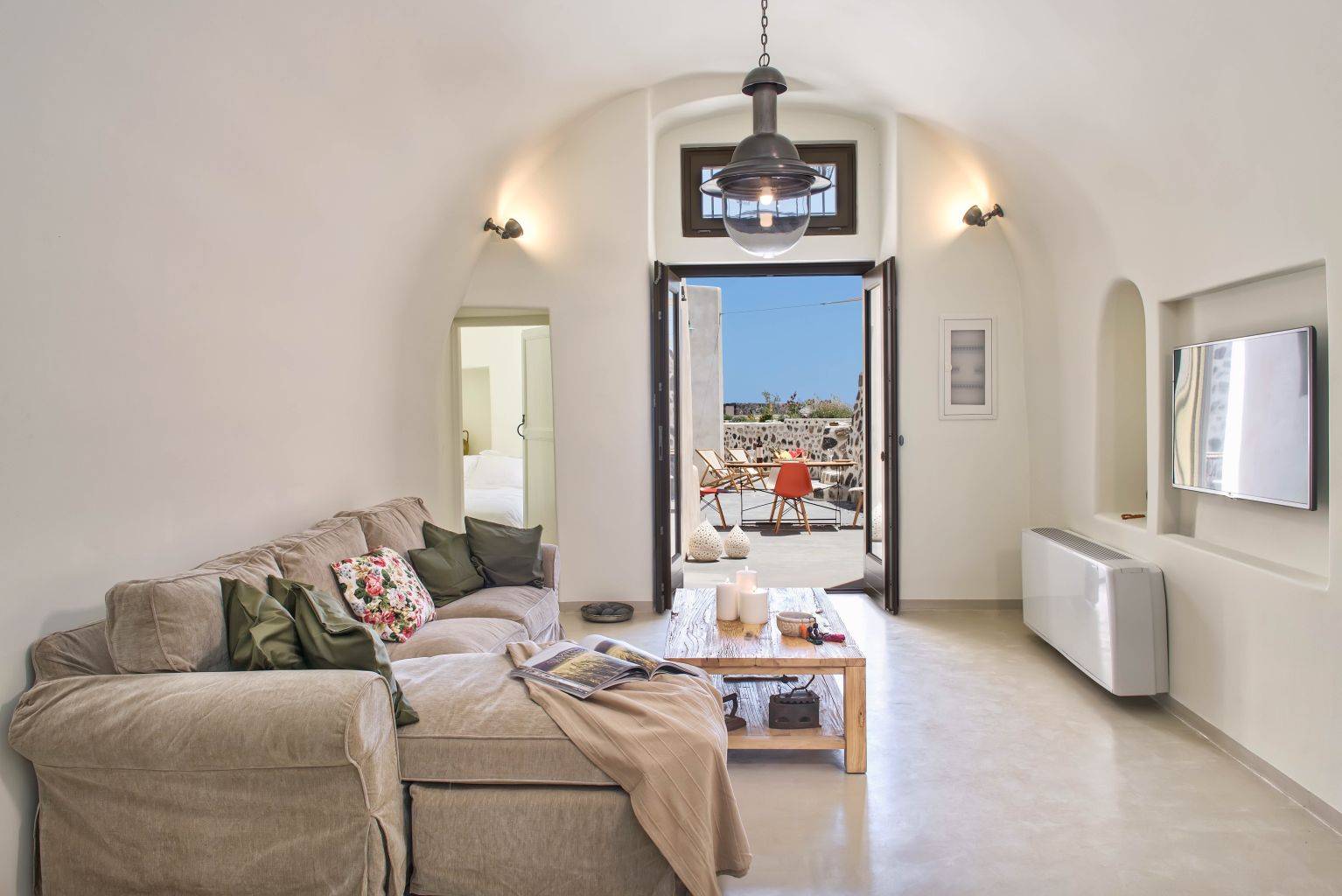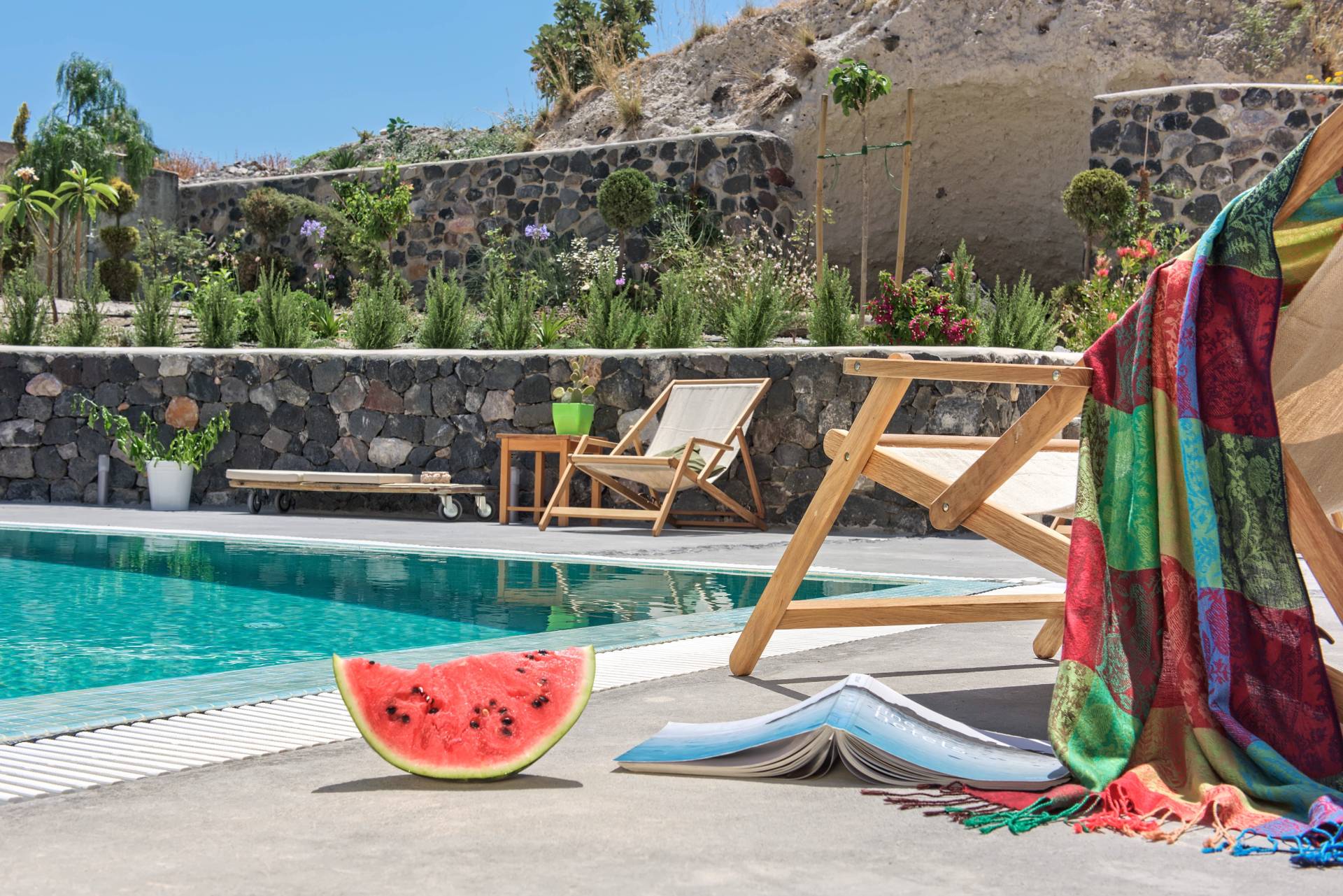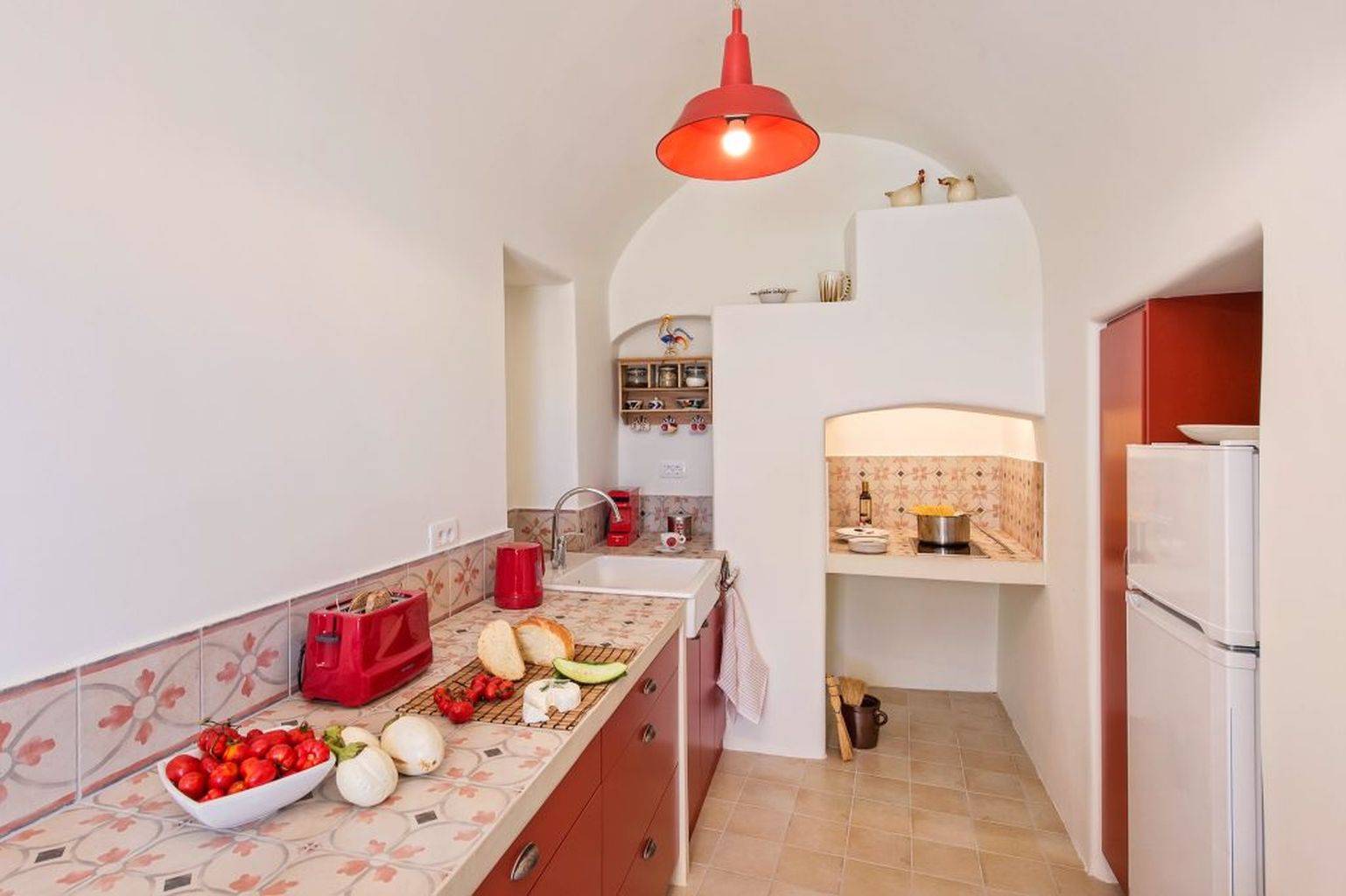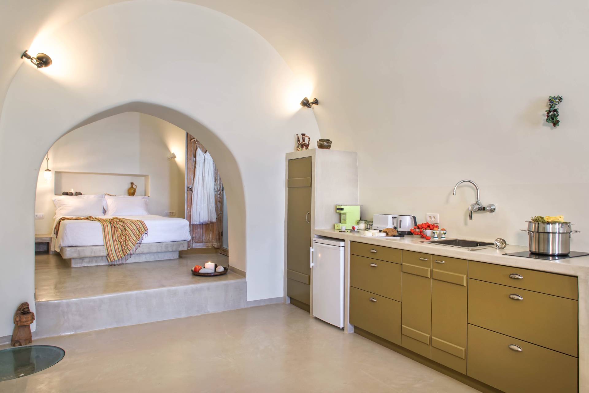 Mantilida Villa Santorini, ένα έργο που φτιάχτηκε με πολύ μεράκι από τους ιδιοκτήτες τους. Δεν θα μπορούσαμε να μην τους ακολουθήσουμε καθώς το έργο τους το αγαπήσαμε από την πρώτη στιγμή. Όταν ο χώρος αποπνέει σεβασμό για την ιστορία του η ευθύνη για την επιλογή των υλικών στο σήμερα αυξάνεται. Βρίσκεται στο Εμπορείο της Σαντορίνης, ένα μέρος που κάποτε ήταν το πέρασμα των έμπορων από όλο τον κόσμο για να προμηθευτούν τα περιζήτητα παραδοσιακά προϊόντα που ο ευλογημένος τόπος παρήγαγε. Ο συνειρμός αυτόματος … υλικά που αντέχουν στην καταπόνηση και στην αυξημένη κινητικότητα. Χαρακτηριστικό επίσης γνώρισμα στην Σαντορίνη του τότε ήταν ότι τα δάπεδα τα κοσμούσαν πλακάκια με σχέδια και κάθε χώρος είχε το δικό του σχέδιο. Με κριτήριο αυτά τα δύο χαρακτηριστικά η επιλογή ήταν ο ιταλικός οίκος Arkadia, με την σειρά Novecento. Τόσο στην Κάναβα όσο και στο Μεγάλο σπίτι χρησιμοποιήσαμε σαν βάση το Cemento Avorio 20×20 και στα υπνοδωμάτια παίξαμε άλλοτε με το Petali Grigio 20×20 άλλοτε με τα Versailes Grigio 20×20 ενώ άλλοτε με τα Trianon Grigio 20×20. Πλακάκια πολύ υψηλών προδιαγραφών που υπόσχονται να παραμείνουν αναλλοίωτα στον χρόνο. Τόσο για την αισθητική τους όσο και για την ποιότητα τους. Οι παραγωγοί τους έχουν φέρει την παλαιότητα τους στην επιφάνεια τους παρουσιάζοντας κάποιες σκιάσεις και φυσικές αλλοιώσεις στους τόνους για να δείξουν ότι μετράνε χρόνια τοποθετημένα. Η σκέψη για το στήσιμο της κουζίνας είχε αρχίσει ήδη να αναφέρεται. Δεν ήταν πρόβλημα όμως, καθώς γνωρίζαμε ότι θα ακολουθήσουμε την ίδια σειρά. Το πρόβλημα ήρθε όταν δεν ξέραμε τι να διαλέξουμε. Τελική επιλογή ήταν το Fiore Rosso 20×20 για την κατασκευή του πάγκου και η Fascia Fiore Rosso 20×20 για την επένδυση του τοίχου της κουζίνας. Ποτέ δεν θα ξεχάσουμε τις περιγραφές για την φυσική εσοχή για τις εστίες της ηλεκτρικής κουζίνας. Το επόμενο βήμα ήταν να δημιουργήσουμε τα μπάνια των χώρων. Είχαμε σαν αφετηρία μας το χαρακτηριστικό γνώρισμα του κυκλαδίτικου νησιού που δεν είναι άλλο από τις καμπύλες των τοίχων. Ήταν δεδομένο ότι η πατητή τσιμεντοκονία θα κυριαρχούσε στον χώρο καθώς είναι το μοναδικό υλικό που θα μπορούσε να ακολουθήσει αυτή την ροή. Αυτό που ψάχναμε είναι το κάτι διαφορετικό στα σημεία.