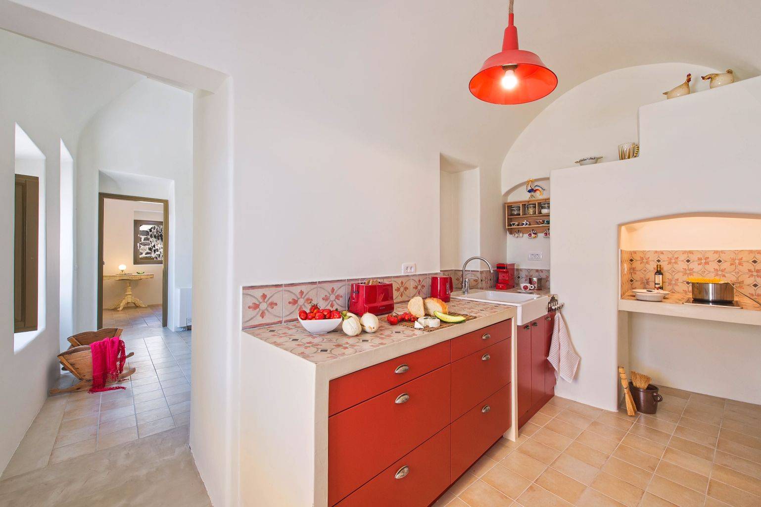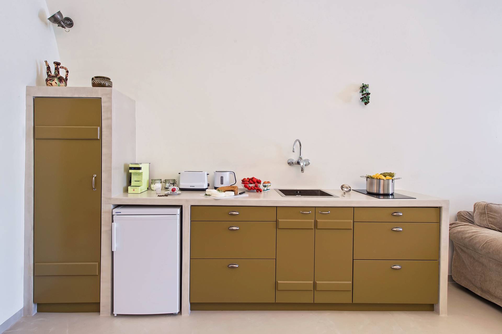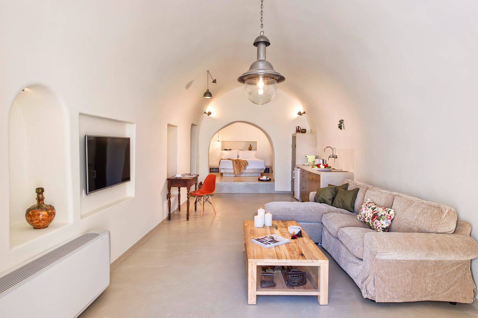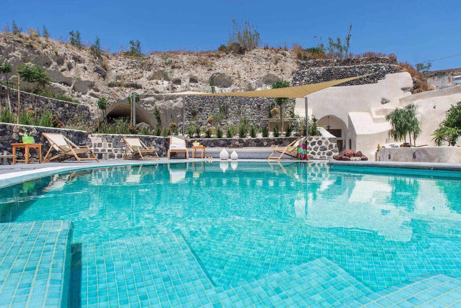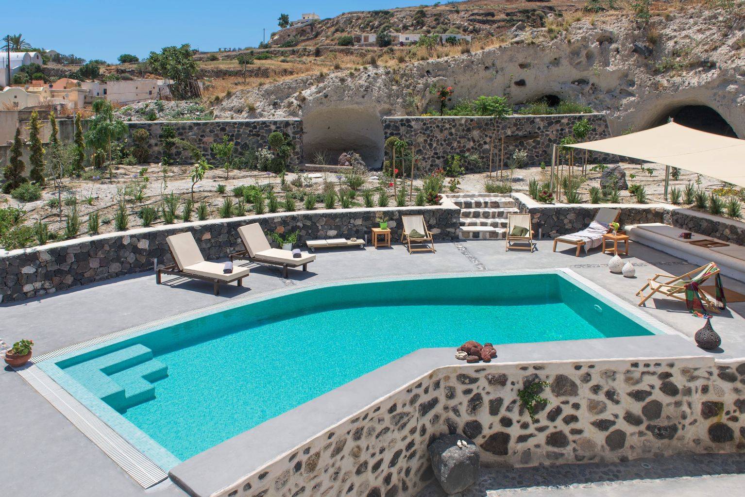 Mantilida Villa Santorini, ένα έργο που φτιάχτηκε με πολύ μεράκι από τους ιδιοκτήτες τους. Δεν θα μπορούσαμε να μην τους ακολουθήσουμε καθώς το έργο τους το αγαπήσαμε από την πρώτη στιγμή. Όταν ο χώρος αποπνέει σεβασμό για την ιστορία του η ευθύνη για την επιλογή των υλικών στο σήμερα αυξάνεται. Βρίσκεται στο Εμπορείο της Σαντορίνης, ένα μέρος που κάποτε ήταν το πέρασμα των έμπορων από όλο τον κόσμο για να προμηθευτούν τα περιζήτητα παραδοσιακά προϊόντα που ο ευλογημένος τόπος παρήγαγε. Ο συνειρμός αυτόματος … υλικά που αντέχουν στην καταπόνηση και στην αυξημένη κινητικότητα. Χαρακτηριστικό επίσης γνώρισμα στην Σαντορίνη του τότε ήταν ότι τα δάπεδα τα κοσμούσαν πλακάκια με σχέδια και κάθε χώρος είχε το δικό του σχέδιο. Με κριτήριο αυτά τα δύο χαρακτηριστικά η επιλογή ήταν ο ιταλικός οίκος Arkadia, με την σειρά Novecento. Τόσο στην Κάναβα όσο και στο Μεγάλο σπίτι χρησιμοποιήσαμε σαν βάση το Cemento Avorio 20×20 και στα υπνοδωμάτια παίξαμε άλλοτε με το Petali Grigio 20×20 άλλοτε με τα Versailes Grigio 20×20 ενώ άλλοτε με τα Trianon Grigio 20×20. Πλακάκια πολύ υψηλών προδιαγραφών που υπόσχονται να παραμείνουν αναλλοίωτα στον χρόνο. Τόσο για την αισθητική τους όσο και για την ποιότητα τους. Οι παραγωγοί τους έχουν φέρει την παλαιότητα τους στην επιφάνεια τους παρουσιάζοντας κάποιες σκιάσεις και φυσικές αλλοιώσεις στους τόνους για να δείξουν ότι μετράνε χρόνια τοποθετημένα. Η σκέψη για το στήσιμο της κουζίνας είχε αρχίσει ήδη να αναφέρεται. Δεν ήταν πρόβλημα όμως, καθώς γνωρίζαμε ότι θα ακολουθήσουμε την ίδια σειρά. Το πρόβλημα ήρθε όταν δεν ξέραμε τι να διαλέξουμε. Τελική επιλογή ήταν το Fiore Rosso 20×20 για την κατασκευή του πάγκου και η Fascia Fiore Rosso 20×20 για την επένδυση του τοίχου της κουζίνας. Ποτέ δεν θα ξεχάσουμε τις περιγραφές για την φυσική εσοχή για τις εστίες της ηλεκτρικής κουζίνας. Το επόμενο βήμα ήταν να δημιουργήσουμε τα μπάνια των χώρων. Είχαμε σαν αφετηρία μας το χαρακτηριστικό γνώρισμα του κυκλαδίτικου νησιού που δεν είναι άλλο από τις καμπύλες των τοίχων. Ήταν δεδομένο ότι η πατητή τσιμεντοκονία θα κυριαρχούσε στον χώρο καθώς είναι το μοναδικό υλικό που θα μπορούσε να ακολουθήσει αυτή την ροή. Αυτό που ψάχναμε είναι το κάτι διαφορετικό στα σημεία.