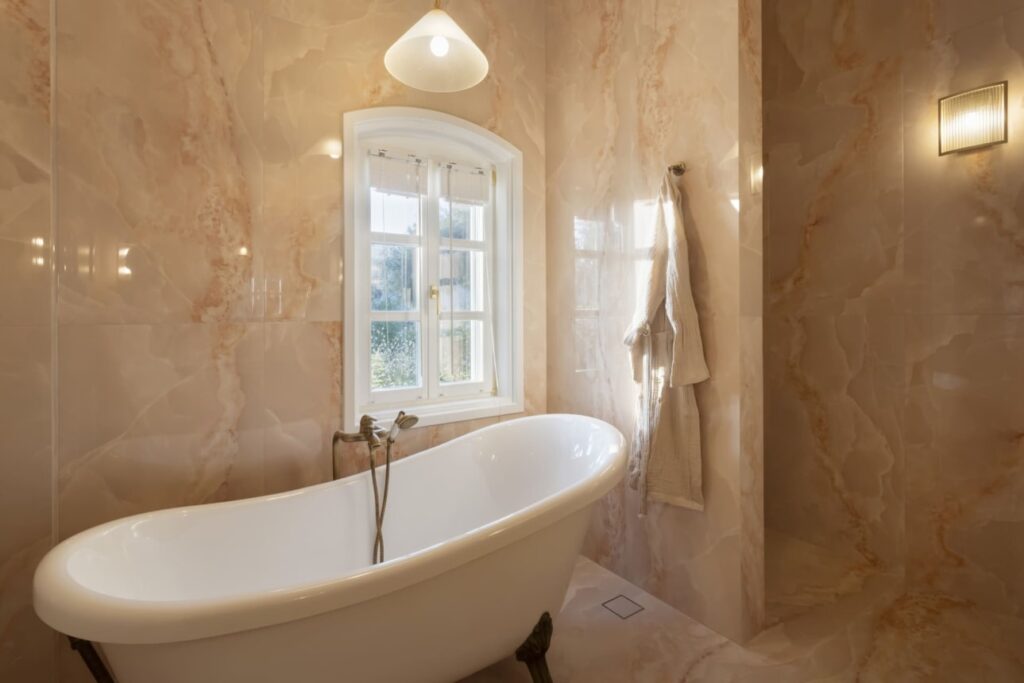 | Η ελεύθερης τοποθέτησης μπανιέρα γίνεται το απόλυτο επίκεντρο του χώρου, προσφέροντας αίσθηση πολυτέλειας και spa. Με τοποθέτηση δίπλα στο παράθυρο, μετατρέπει το μπάνιο σε μια εμπειρία χαλάρωσης που συνδυάζει κομψότητα και φυσικό φως.